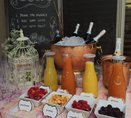 Add a touch of elegance to your celebration with our premium Mimosa Bar. Featuring crisp Brut Champagne and a vibrant selection of mixers, this interactive station allows your guests to craft their own sparkling masterpiece.