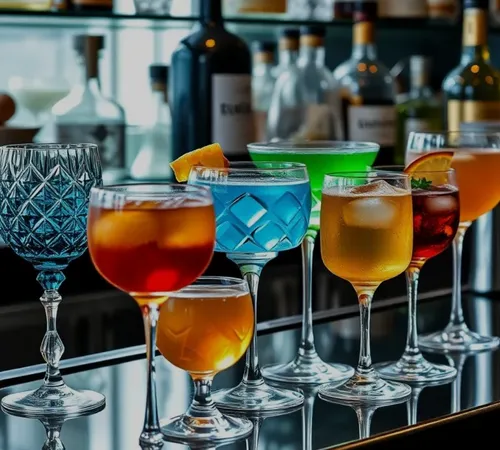 The Finishing Touches: A full suite of premium mixers and fresh fruit garnies (lemons, limes, and cherries).